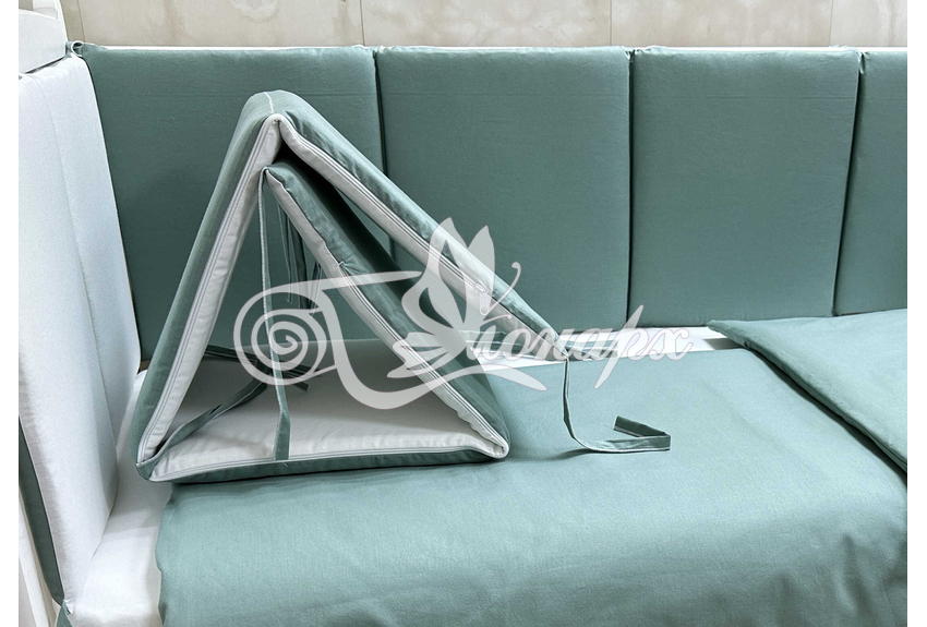 Бортики СО СЪЕМНЫМИ ЧЕХЛАМИ в кроватку: защитят Вашего малыша от ушибов, сквозняков, солнечных лучей и не дадут малышу запутаться в прутьях кроватки.
