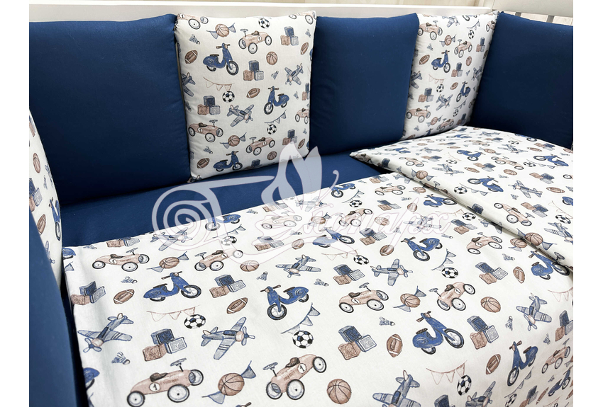 Бортик составной: 12 подушек 31х34 см на замочках упакованы в сумку-переноску.
