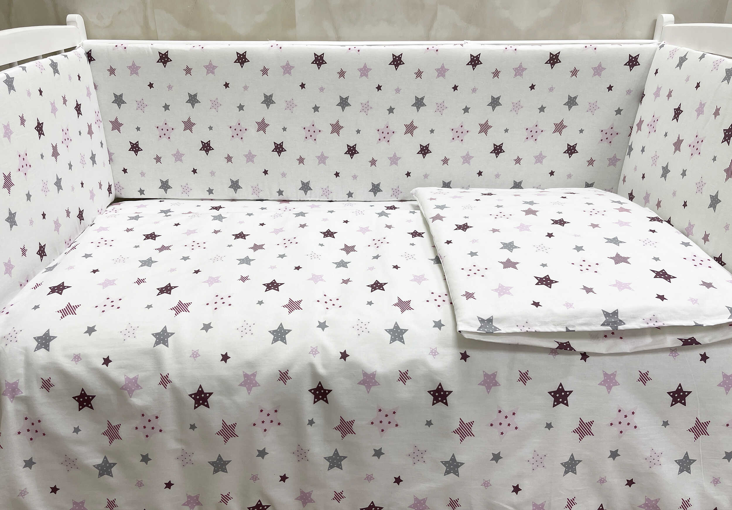 Комплект в кроватку для новорожденных является необходимым пунктом в списке покупок для ребенка при рождении. Комплект в кроватку может комплектоваться разным количеством предметов, таких как подушка и одеяло, пододеяльник, наволочка и простыня, балдахин, бортики и другие элементы.