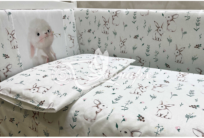 Бортики СО СЪЕМНЫМИ ЧЕХЛАМИ в кроватку: защитят Вашего малыша от ушибов, сквозняков, солнечных лучей и не дадут малышу запутаться в прутьях кроватки. - Простыня на резинке 60х120 см (подходит для стандартной кроватки)