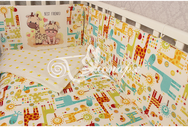 Бортики СО СЪЕМНЫМИ ЧЕХЛАМИ в кроватку: защитят Вашего малыша от ушибов, сквозняков, солнечных лучей и не дадут малышу запутаться в прутьях кроватки. - Простыня на резинке 60х120 см (подходит для стандартной кроватки)