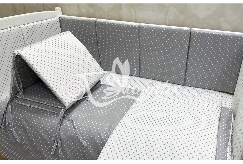 Бортики СО СЪЕМНЫМИ ЧЕХЛАМИ в кроватку: защитят Вашего малыша от ушибов, сквозняков, солнечных лучей и не дадут малышу запутаться в прутьях кроватки. - Простыня на резинке 60х120 см (подходит для стандартной кроватки)