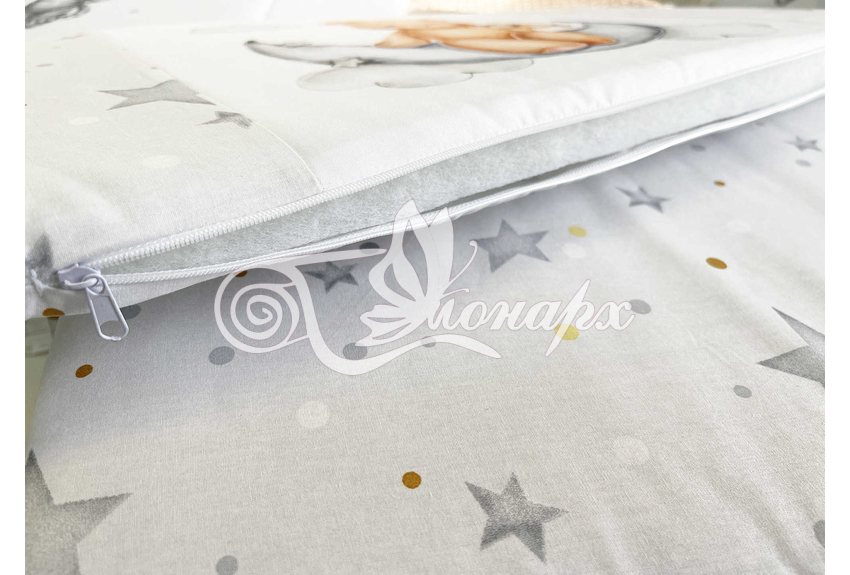 Бортики СО СЪЕМНЫМИ ЧЕХЛАМИ в кроватку: защитят Вашего малыша от ушибов, сквозняков, солнечных лучей и не дадут малышу запутаться в прутьях кроватки. - Простыня на резинке 60х120 см (подходит для стандартной кроватки)