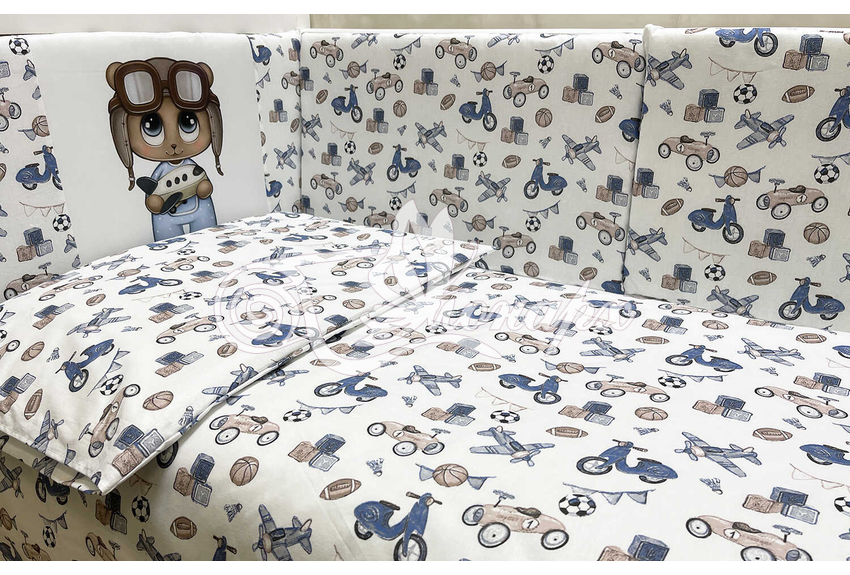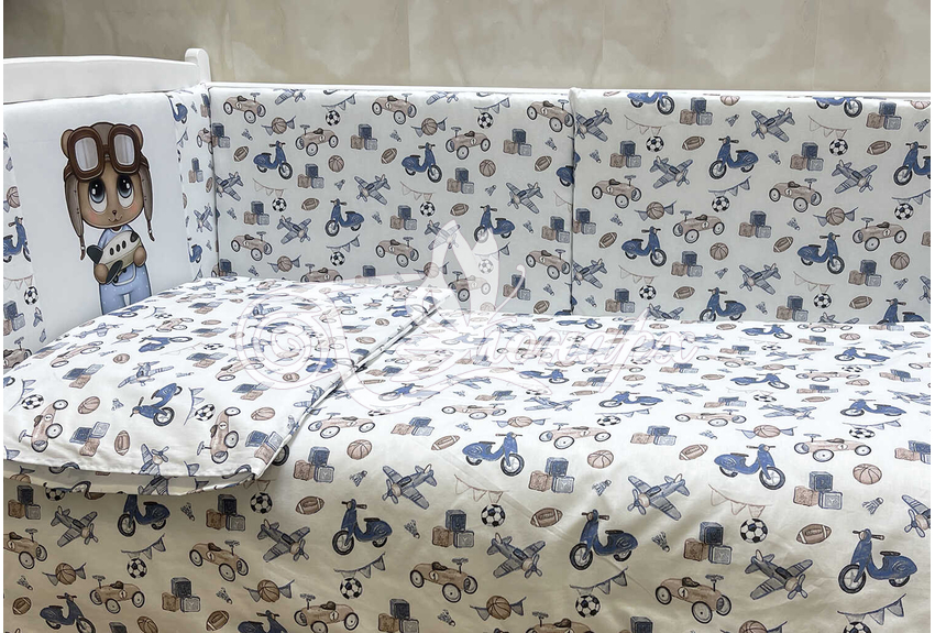Бортики СО СЪЕМНЫМИ ЧЕХЛАМИ в кроватку: защитят Вашего малыша от ушибов, сквозняков, солнечных лучей и не дадут малышу запутаться в прутьях кроватки. - Простыня на резинке 60х120 см (подходит для стандартной кроватки)