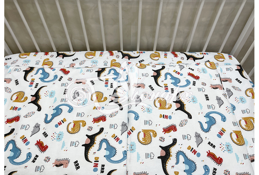 Бортики СО СЪЕМНЫМИ ЧЕХЛАМИ в кроватку: защитят Вашего малыша от ушибов, сквозняков, солнечных лучей и не дадут малышу запутаться в прутьях кроватки. - Простыня на резинке 60х120 см (подходит для стандартной кроватки)
