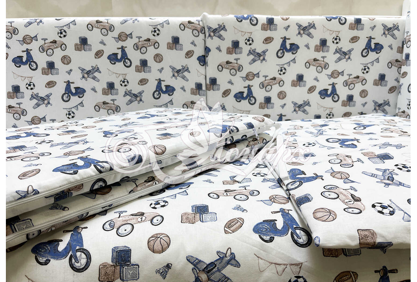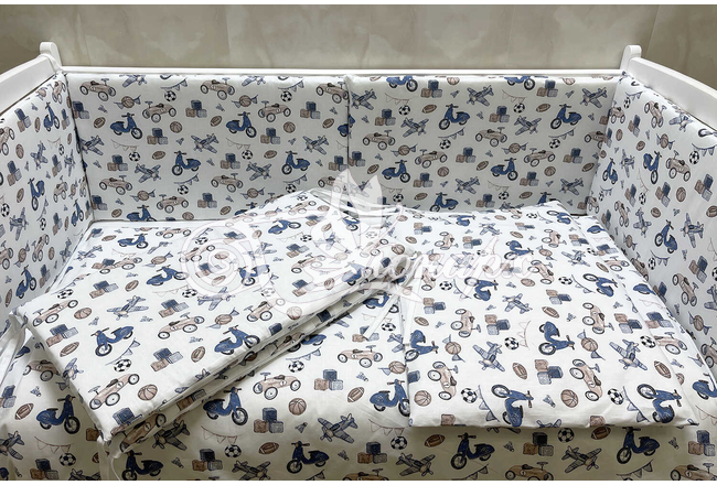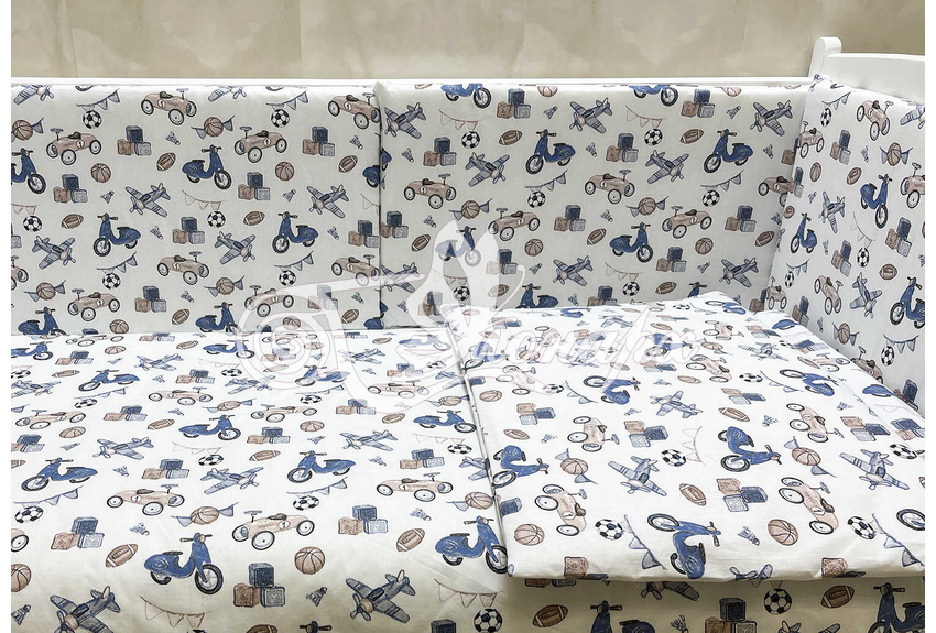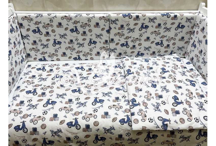 Бортики СО СЪЕМНЫМИ ЧЕХЛАМИ в кроватку: защитят Вашего малыша от ушибов, сквозняков, солнечных лучей и не дадут малышу запутаться в прутьях кроватки. - Простыня на резинке 60х120 см (подходит для стандартной кроватки)