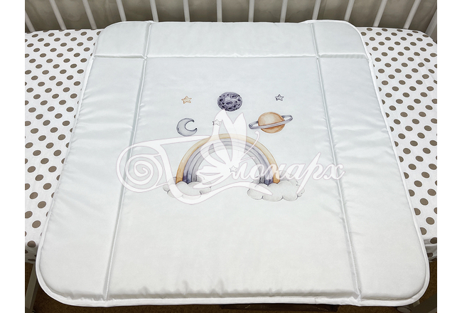 Матрасник универсальный, каждая из сторон легко загибается, что дает возможность расположить его на любую поверхность.