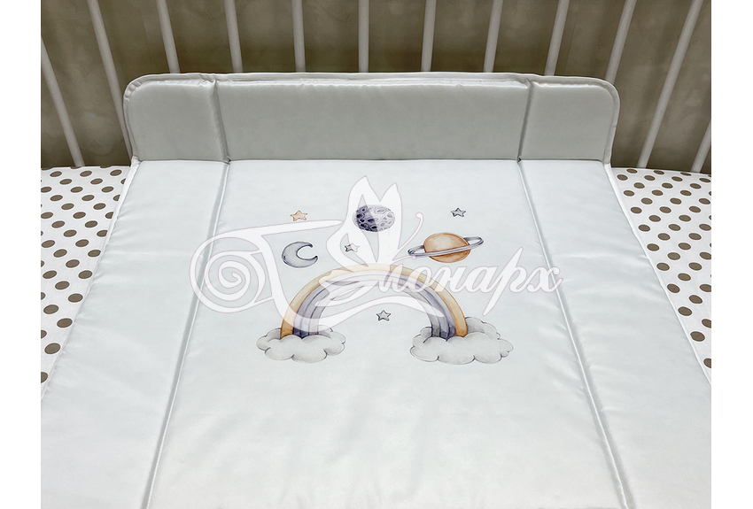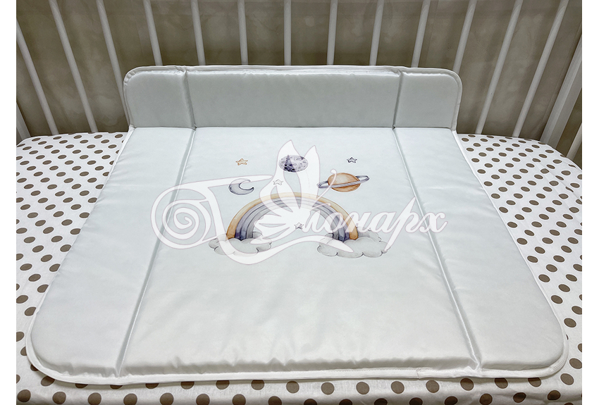 Бортики сгибающиеся, выполняют защитную функцию. Изделие предназначено для малышей с рождения до годика, выполнено из плащевой ткани, наполнитель волтекс.
