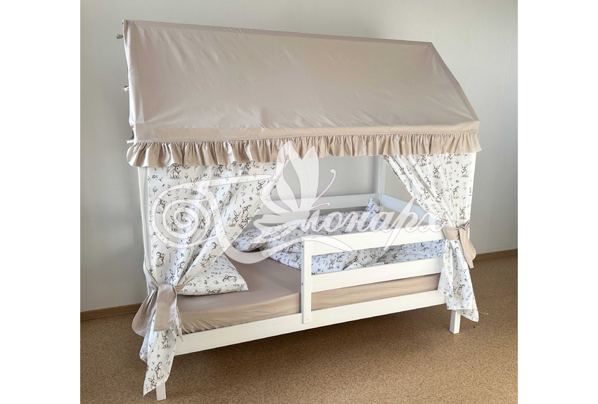 Крыша и шторы для кроватки домика ТД-28 купить в Хабаровске.Теги: комплект в кроватку домик, текстиль для домика, крыша для домика