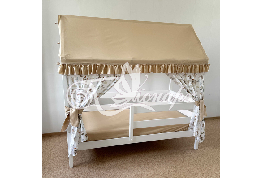 Крыша и шторы для кроватки домика ТД-45 купить в Хабаровске.Теги: комплект в кроватку домик, текстиль для домика, крыша для домика